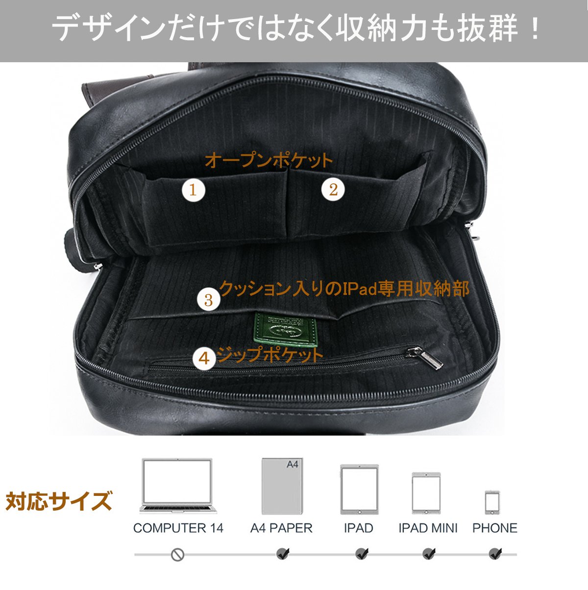 Inside: iPad exclusive storage part with cushion × 1 × 1 zipper pocket × 1 open pocket × 2