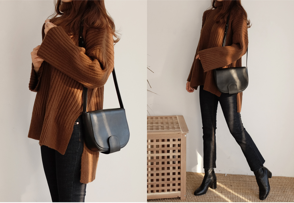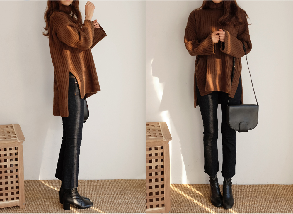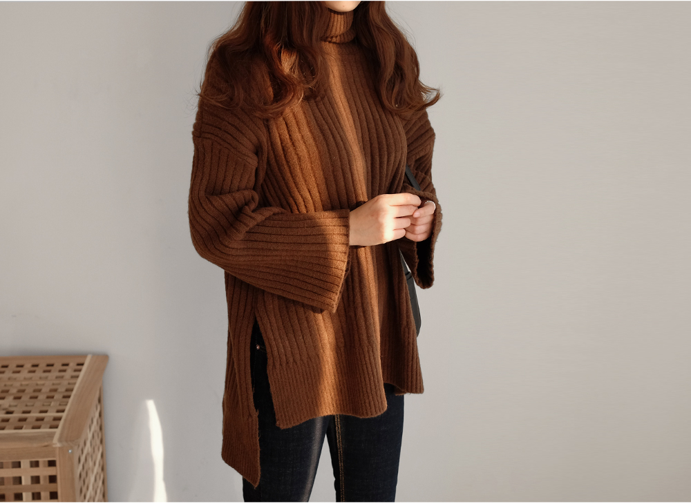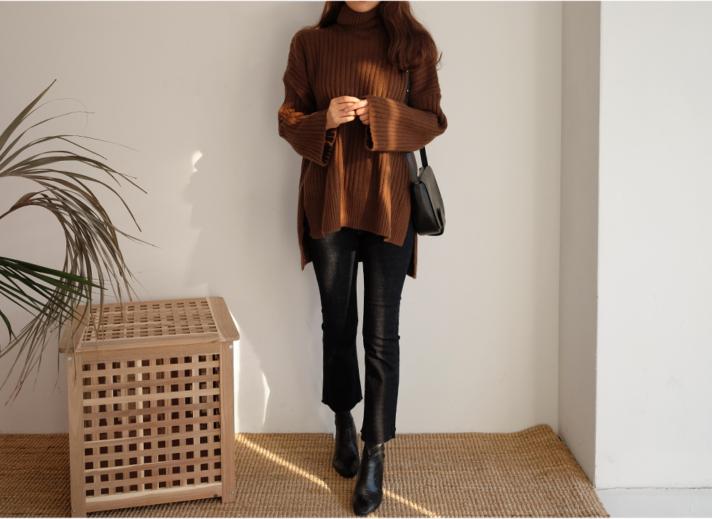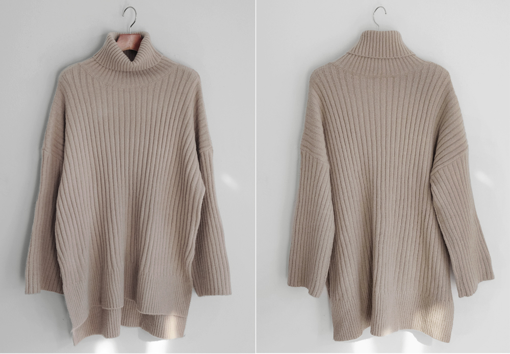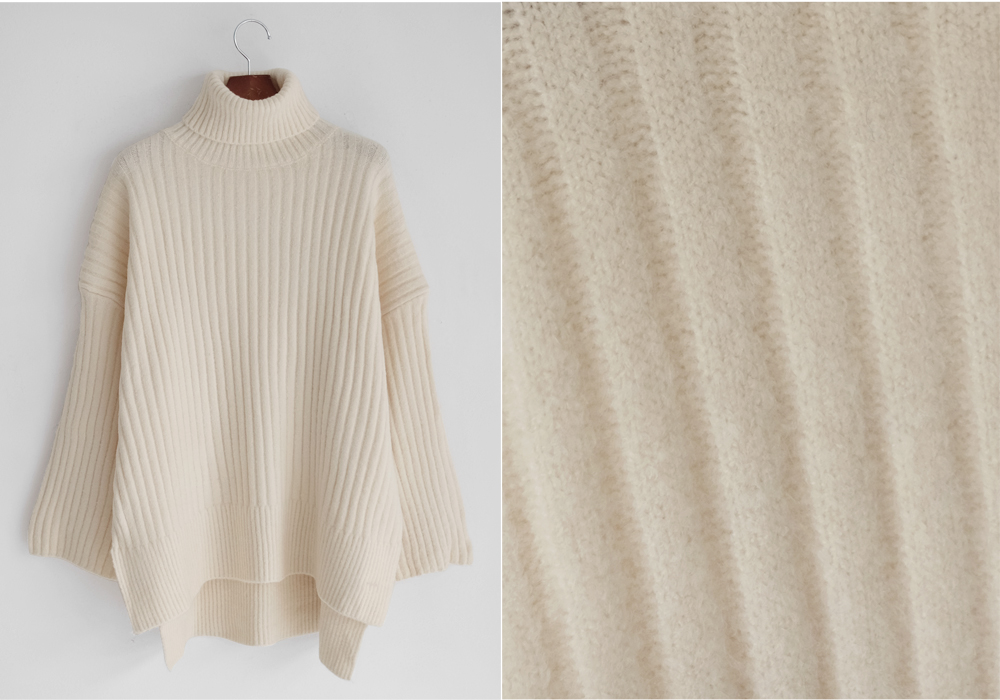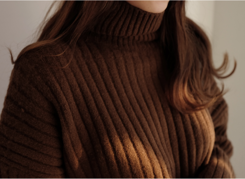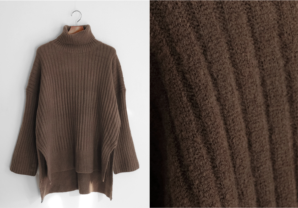 세로로 짜여진 굵은 골지가 바디를 슬림하게 연출해주는 폴라니트:)