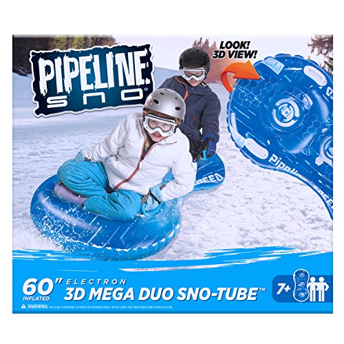 Studio : Aqua Leisure Publisher : Aqua Leisure Product Description Double the fun! The 3D-Mega DuoSno-Tube is cool to view and ride. The 2-person snow tube features electron blue 3D graphics, 4 oversized, sturdy handles, and cold/crack-resistant construction for added safety and durability. Maximum weight capacity is 220 lbs. ?2 Person snow tube ?Dimensions: 60" (152 cm) outside diameter (inflated) ?3D graphics design Electron Blue ?Cold/crack-resistant durable construction ?4 oversized, sturdy handles ?Maximum weight capacity: 220 lbs. ?Recommended ages 7 and up 0