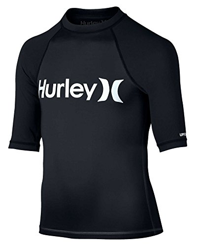 -. Binding : Misc. -. Brand : Hurley -. Department : boys -. Feature : Hurley is one of the largest surf brands in the world / Hurley is always looking to improve on the status quo / Hurley sponsors some of surfing's great like Rob Machado and Tim Curran -. ProductGroup : Apparel -. ProductTypeName : SWIMWEAR -. Title : Hurley Big Boys' One & Only SS Rash Guard - Black / White