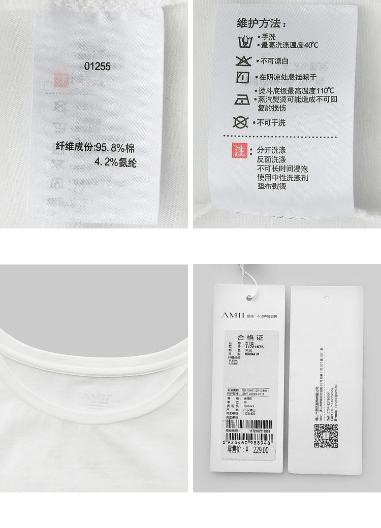 洗涤标准:不可浸泡不可漂白110℃以下垫布熨烫悬挂晾干40℃以下手洗不可干洗