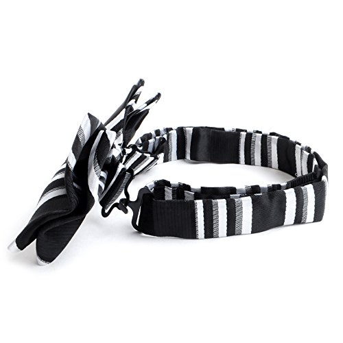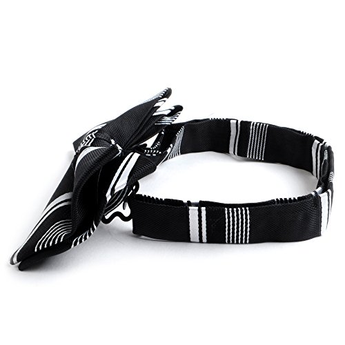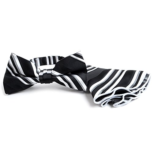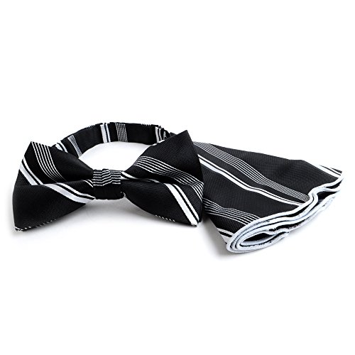 Binding : Apparel Product Description If you're seeking stripes that have a little more flair to them, then this bow tie and handkerchief set is for you. The stripes vary in width, breaking away from a completely traditional pattern. The handkerchief's round shape allows it to maintain a floral-like appearance while inside of the breast pocket and can be rolled, folded, and pinched in multiple ways to achieve the look you are seeking. 0