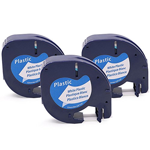 Unistar 3 Pack Compatible for DYMO LetraTag 91331 (S0721660) Black on White Plastic Tape 0.47 Inch (12mm) x 13 Feet (4m)