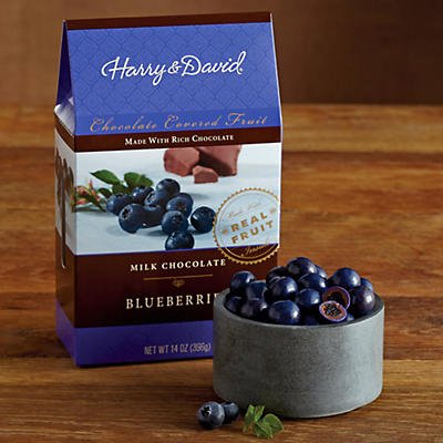 -. Binding : Misc. -. Brand : Harry & David -. Feature : Milk Chocolate Blueberries -. IsAdultProduct : 0 -. Label : Harry & David -. Manufacturer : Harry & David -. PackageQuantity : 1 -. ProductGroup : Grocery -. ProductTypeName : GROCERY -. Publisher : Harry & David -. Studio : Harry & David -. Title : Milk Chocolate-Covered Blueberries - Gift Baskets & Fruit Baskets - Harry and David