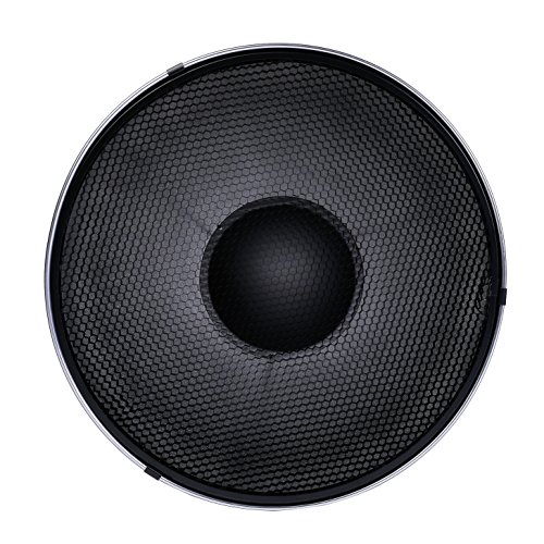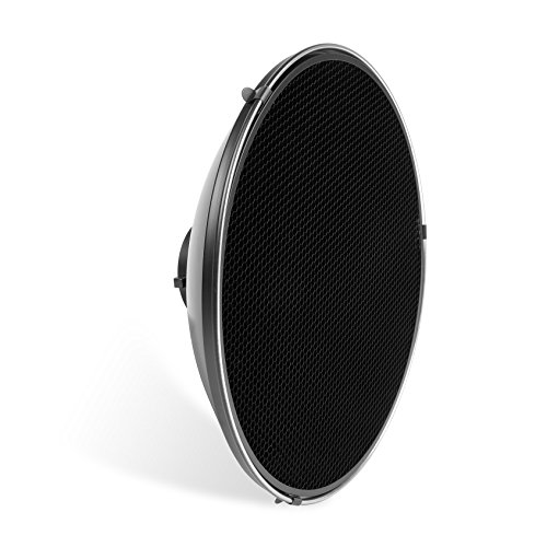 Studio : PhotoSEL Publisher : PhotoSEL Binding : Camera Product Description The PhotoSEL Beauty Dish Reflector is a unique light shaping tool popularized by portrait and fashion photographers. It lives up to its potential by offering a bridge between softboxes and umbrellas that yields a soft but crisp light with snappy contrast and a textural quality that flatters makeup on models and accentuates character in portrait subjects. The built-in deflector bounces the flash's direct output backwards, filling the shallow dish and casting a wide beam of soft light forward. The included honeycomb grid allows even greater control of both light spread and flare and can produce stunning, dramatic lighting with very hard shadow transfer edges. Specifications Diameter: 55 cm (22 inches) Angle: 120 degrees Depth: 20 cm (7.9 inches) Material: Aluminium Finish: Black exterior, silver interior Honeycomb Grids: 25-30 degree Compatibility: PhotoSEL and all other flash heads with Bowens S-Type three-prong mount from Bowens, Interfit, Venus, etc. What's included 1 x beauty dish 1 x diffuser 1 x honeycomb grid STUDIO FLASH AND STAND ARE NOT INCLUDED 0