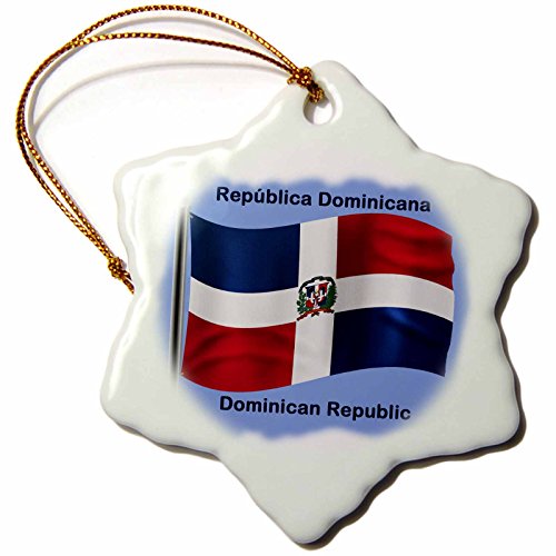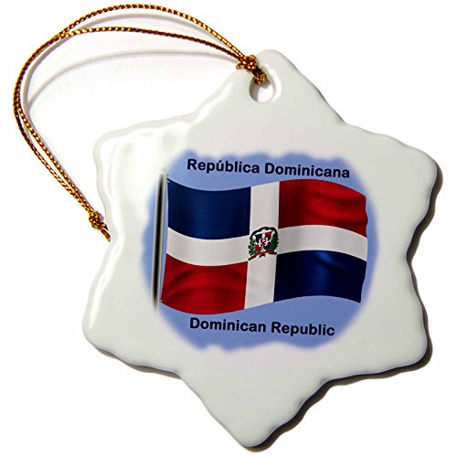3dRose orn_58780_1 Dominican Republic Flag Waving on a Blue Background Snowflake Ornament, Porcelain, 3-Inch