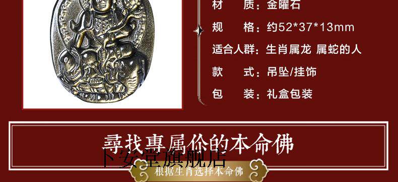 开光天然金曜石普贤菩萨吊坠十二生肖属龙蛇本命佛守护神吊坠项链