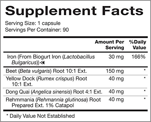 Iron Synergy features 30mg Food-Grown Iron Complex with Blood Builiding Herbs