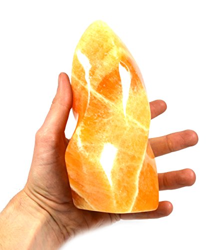 Fiery Orange Crystal Stone Flame, 6.5" Tall (2.75lbs), Carved from Real North American Calcite - The Artisan Mined Series by hBAR