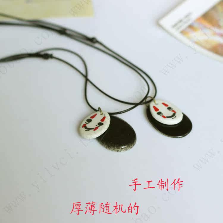 Double tiles little faceless men and hand-painting ceramic necklace lanyards Korea trinkets creative