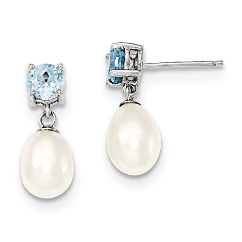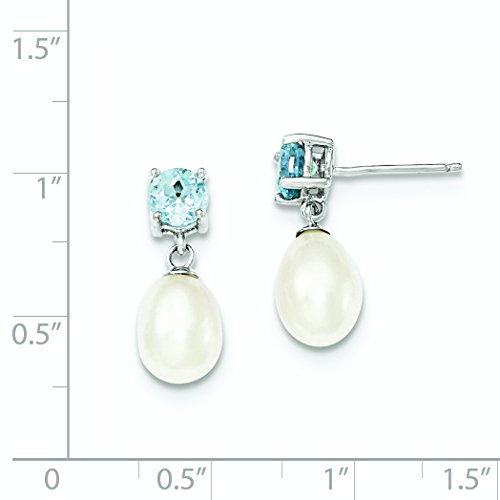ICECARATS DESIGNER JEWELRY 925 STERLING SILVER BLUE TOPAZ 8MM FRESHWATER CULTURED PEARL TEARDROP POST STUD BALL BUTTON STUD EARRINGS