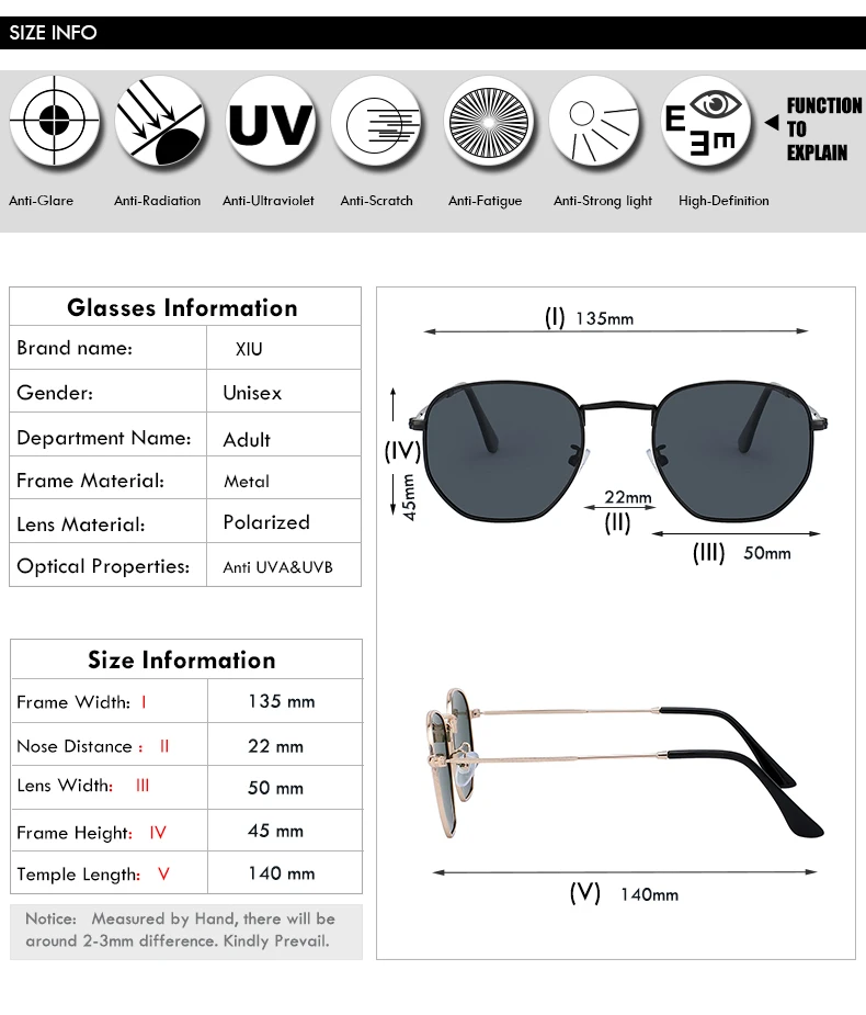 Lens Function: 100% UV400 Protection Against Harmful UVA/UVB Rays