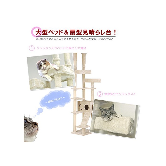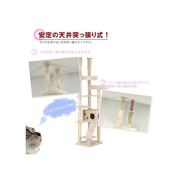 원본상품명:2017年モデルCW-RT022 「人間用家具メ?カ?」が作った、突っ張り型キャットタワ? ネコタワ? 高さ 約228~268cm 【?になる?いが無いと好評です】大型ハウス猫ベッド2個付き【丈夫な