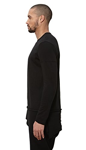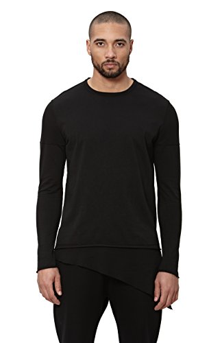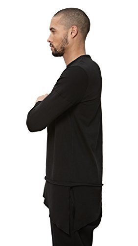 Uncommon Thrds Mens Top: Long Sleeve Jersey Elongated Asymmetric Hem with Thermal Contrast Panels