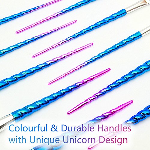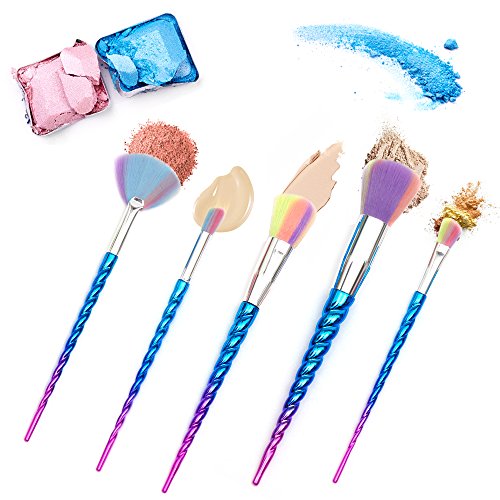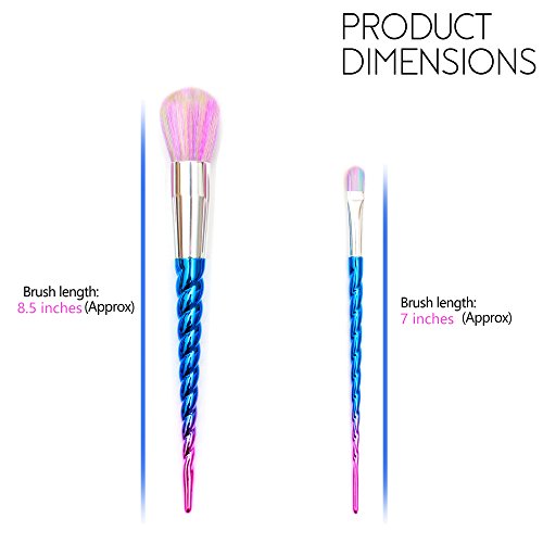 - STYLISH UNICORN DESIGNED HANDLE: The spiral brush handles are twisted like a Unicorn horn. Connecting with premium aluminium ferrules promise these makeup brushes set for long time use without any damage.