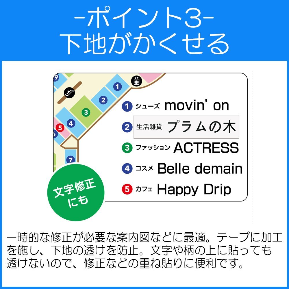 【Even though you can paste the underlay, you can not penetrate the base layer】 Including processing on the back side of the tape also improves hiding performance! It is not influenced by the color of the paste, letters can be read securely! Even if you paste from the top, you can not see the underlayer