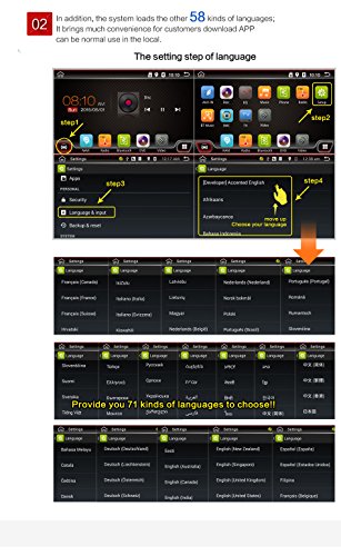 - ★Built-in Bluetooth for hands-free calling and Stream audio music from your Smart phone or Tablet to your Car's speakers & Simple operation,fits the original wiring and plugs and sockets ,just connect and plug,no modification need.Support English,Russian,Arabic,German,Spanish,French,Thai,Italian OSD Language