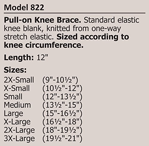 -. Feature : Elastic Pull-on Knee Brace / Closed patella / Length: 12" / Sizes: XX-Small, X-Small, Small, Medium, Large, X-Large, XX-Large, XXX-Large / Contains Natural Rubber Latex