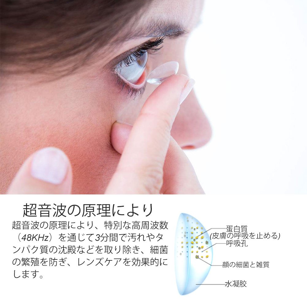 ポータブル型:小さくて、持ち運びに便利です。ホーム、オフィスなどの場所で使用できます。洗浄時間は3分でできて、一晩の浸漬も必要がありません。洗浄の時レンズを触ることが少なくて、感染を防止できます。