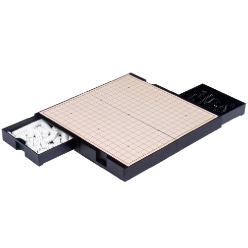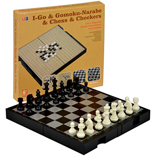 Feature : Play 4 games on 1 board; on one side of the board, play Go and Gomoku-Narabe; on the other side of the board, play chess and ckeckers; board dimensions are 9.75 inches x 9.25 inches x 1.25 inches (24.8 centimeters x 23.5 centimeters x 3 centimeters) / Go stones and chessmen included; complete set of go stones (181 black and 180 white) included; complete set of chessmen also included; playing pieces magnetically attach to the board making playing while travelling easy; enjoy the most classic mind sports of human kind in one game set / Includes 4 built-in drawers for conveniently storing go stones and chessmen when not in play / Complete set is compact for easy storage and transport / Here, at Yellow Mountain Imports, we want you to be satisfied with your purchase; you are backed by our 30 day no questions asked money back guarantee so you can buy with confidence