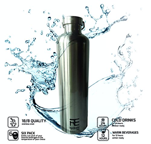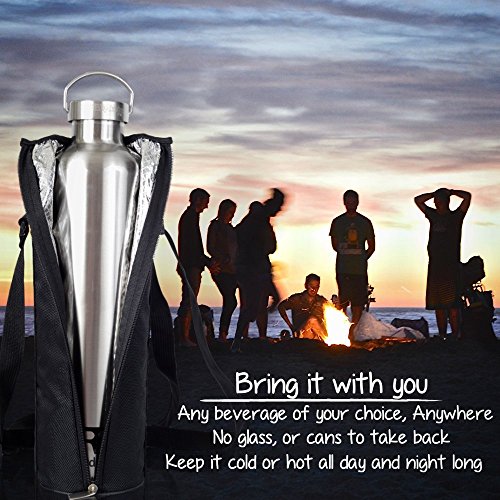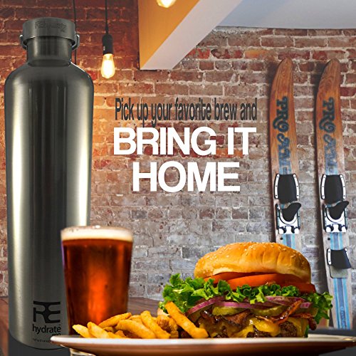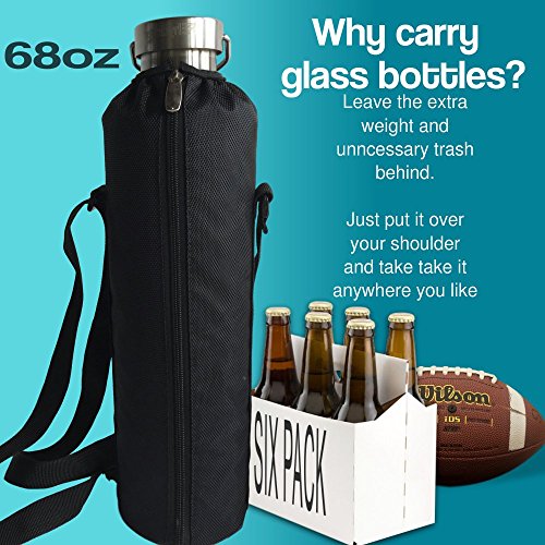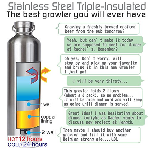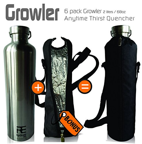 Rehydrate Pro (Chrome) Stainless Steel Insulated Water Bottle and Beer Growler, 68oz Capacity, Double Wall Design, for Hot and Cold Beverages, Includes Bonus Insulated Bottle Pouch