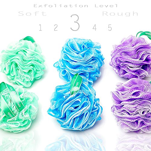 Lulu Essentials Premium Quality Loofah Multi - Color (6 Pack) Bath and Shower Sponge, Mesh Pouf Body Luffa Scrubber Puff