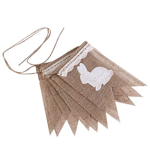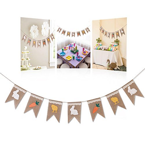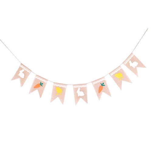Tinksky Easter Decoration Burlap Bunting Banner Rabbit Carrot Print Banner for Easter Birthday Party Decoration