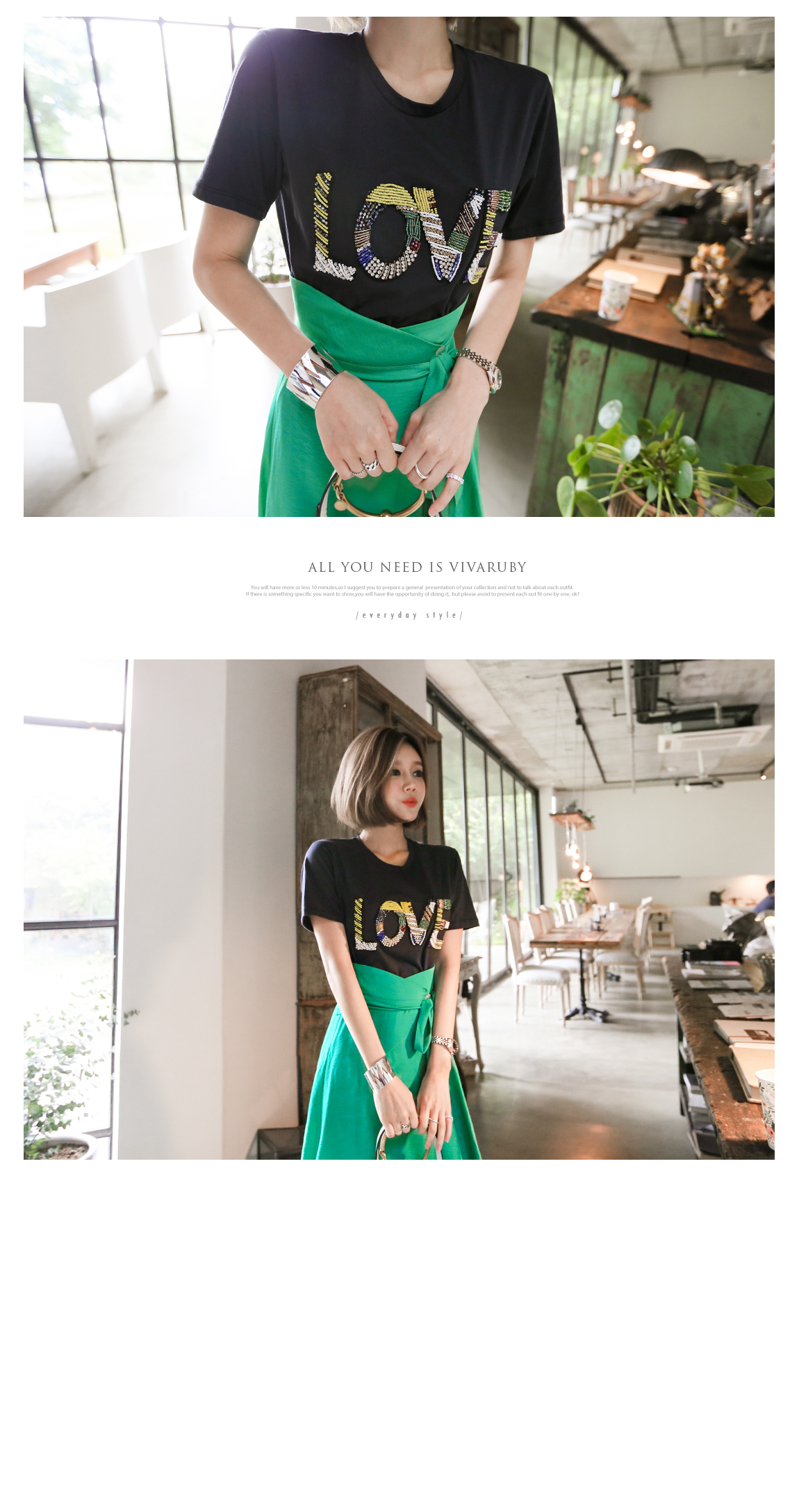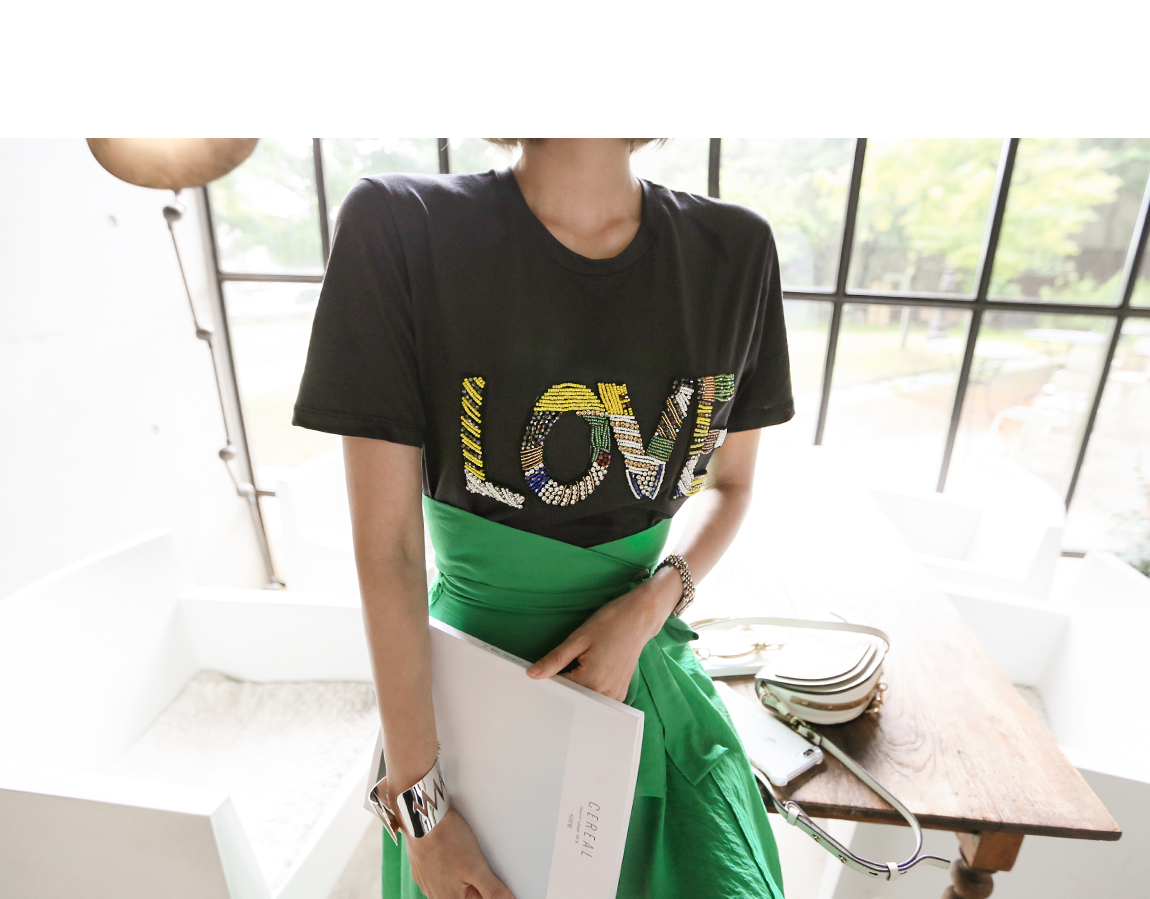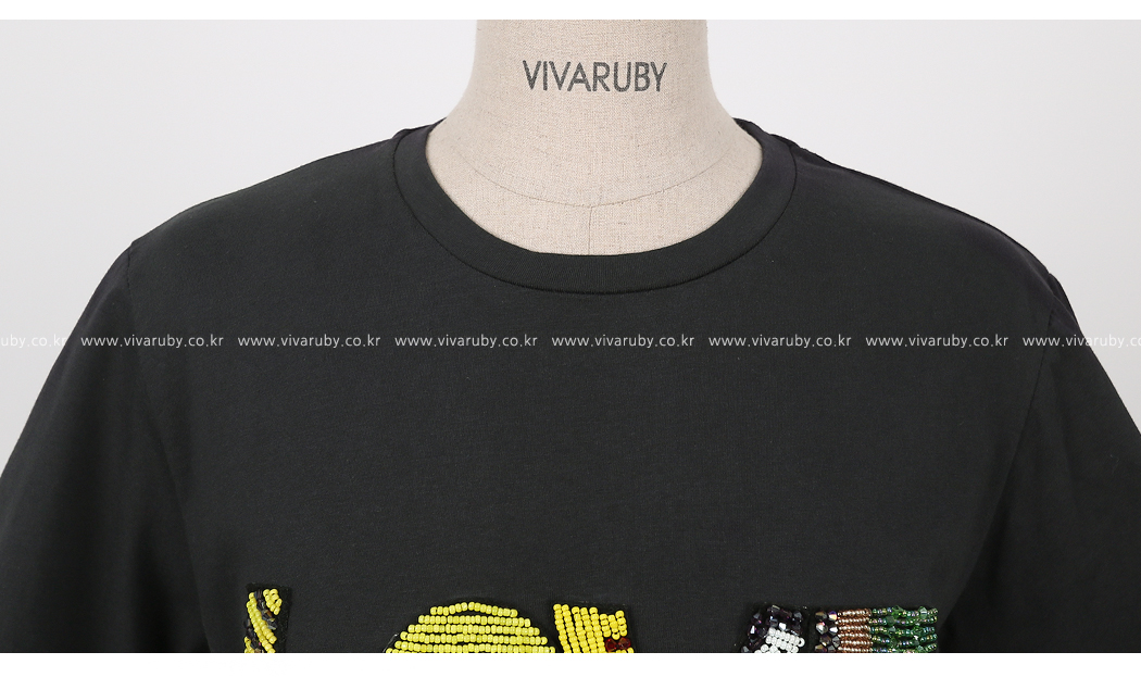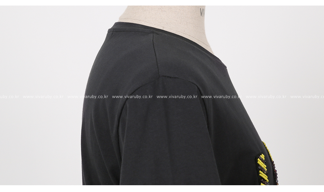 레터링 라인의 비즈 디테일로 트렌디한 포인트를 주었어요