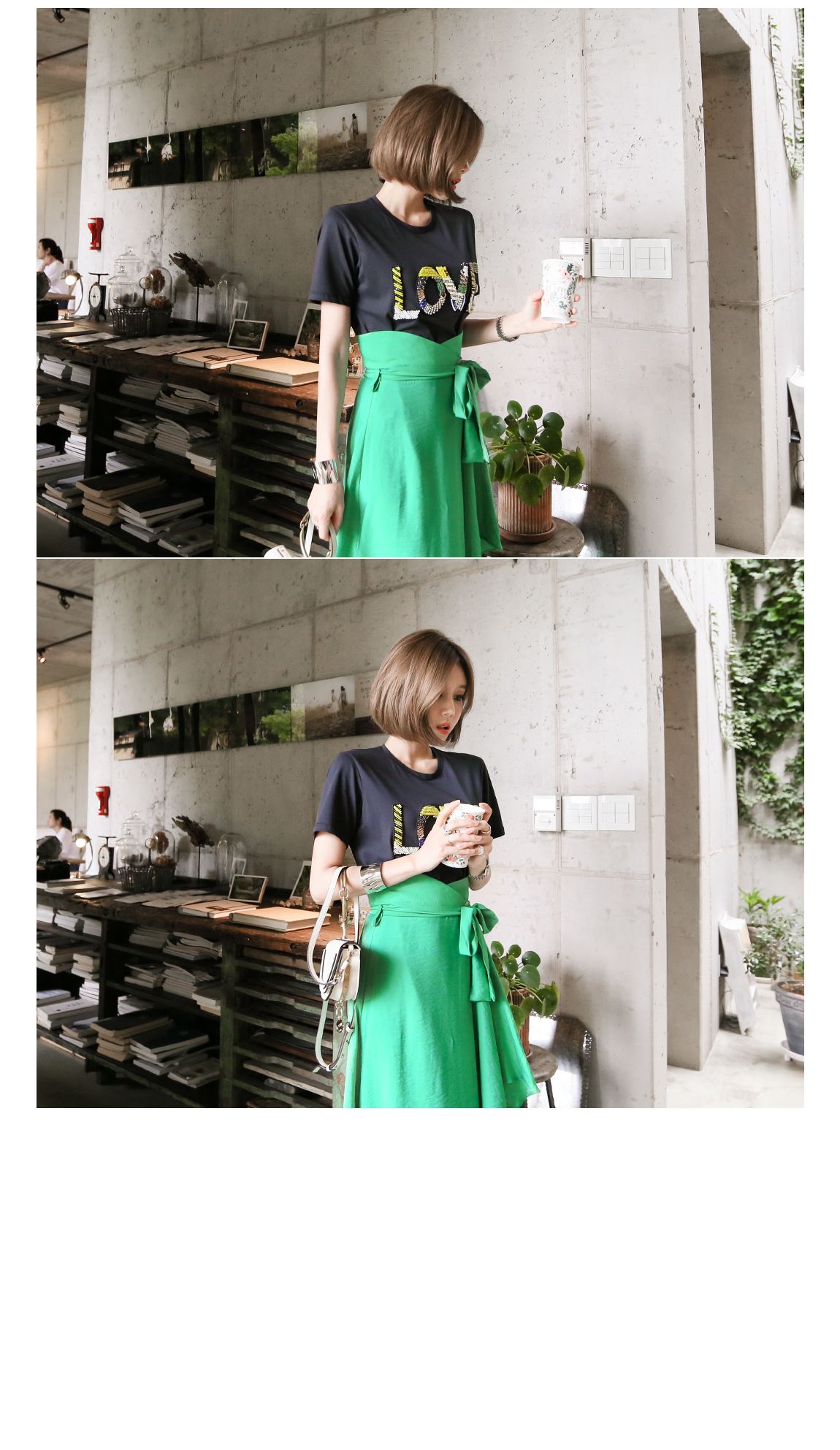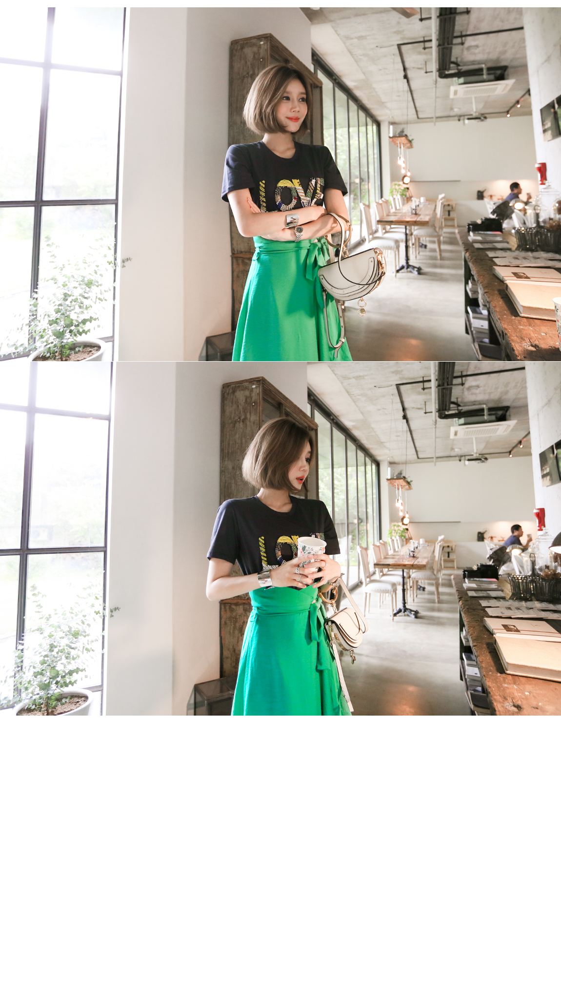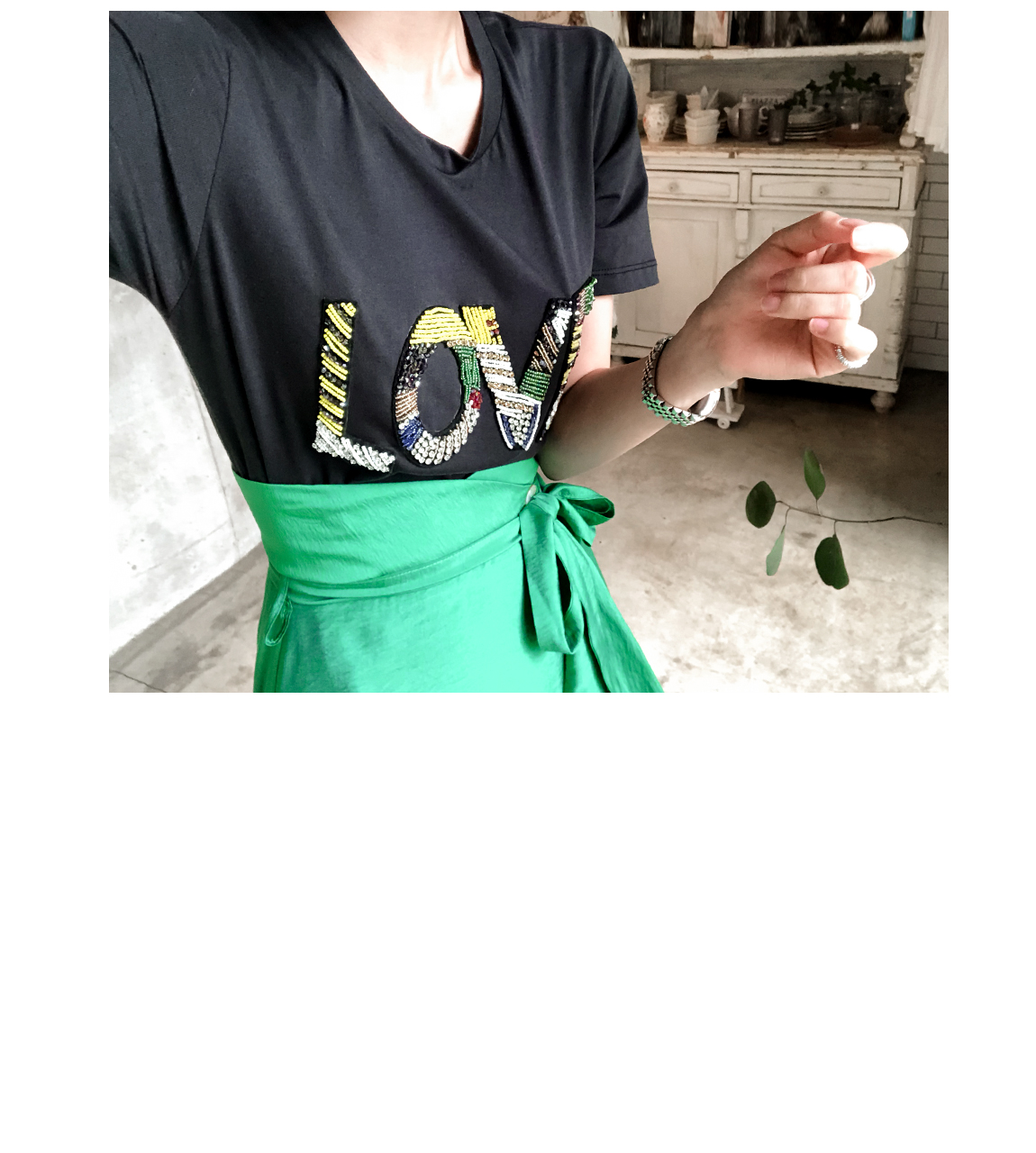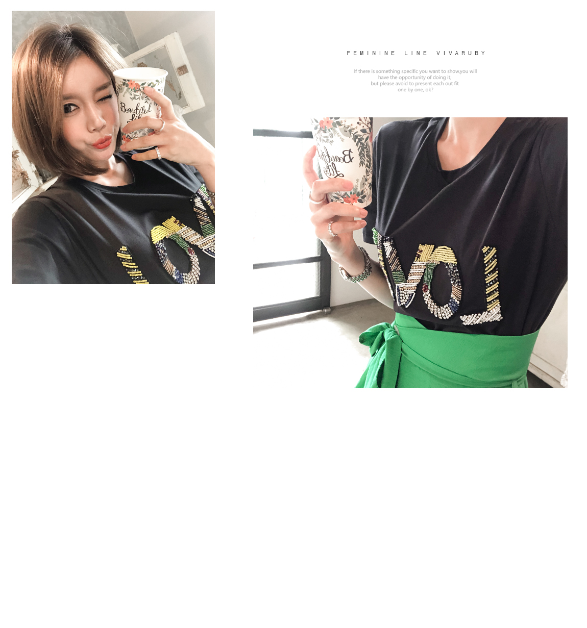 레터링 라인의 비즈 디테일로 트렌디한 포인트를 주었어요