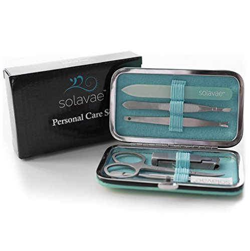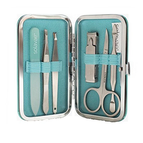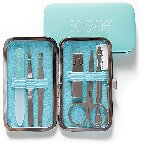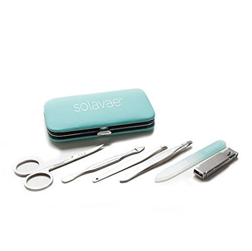 Solavae Manicure Pedicure Set with Stainless Tools, Crystal Nail File & Clippers for Women, Men & Teens