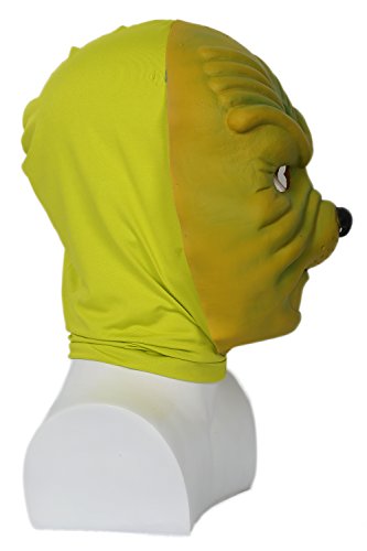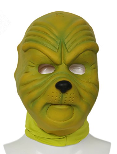 -. Feature : Creepy Halloween Party Mask / Size: head size up to 23 1/2" / Including: A Grinch face mask / Natural latex material, soft and non toxic. / Comfortable and breathable, fits most adults.