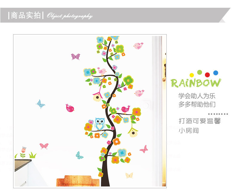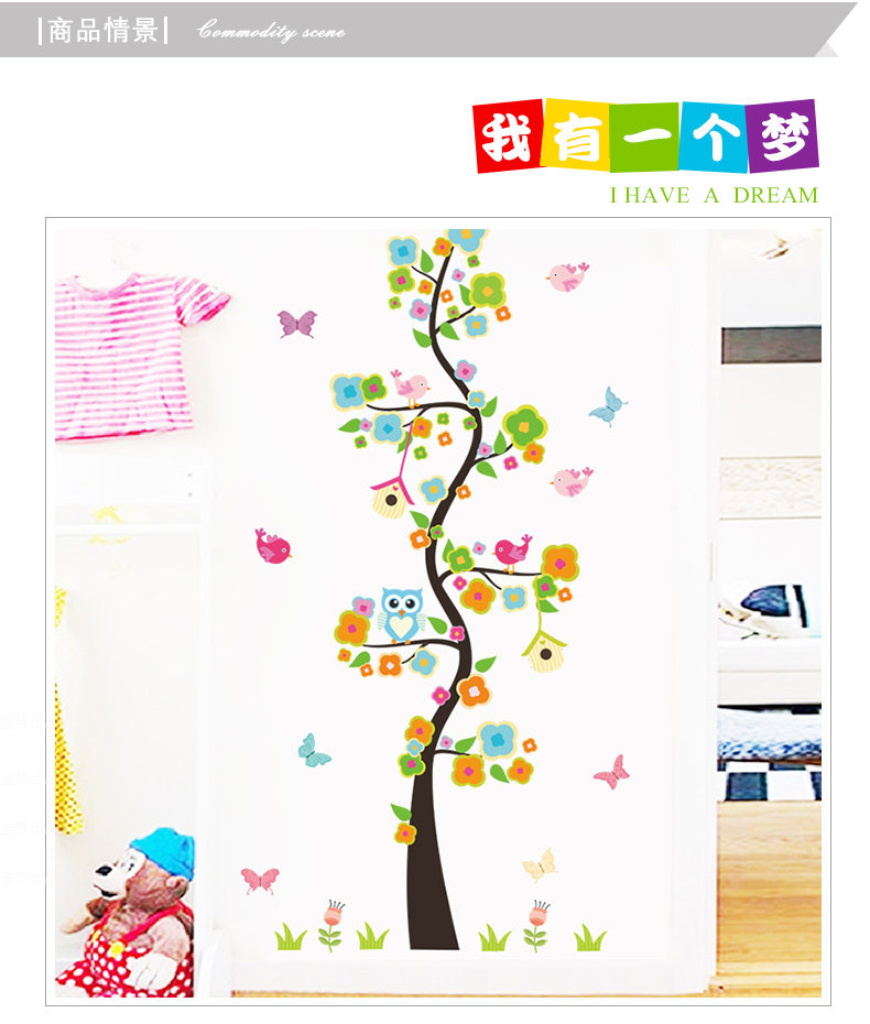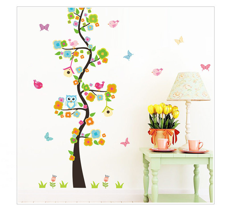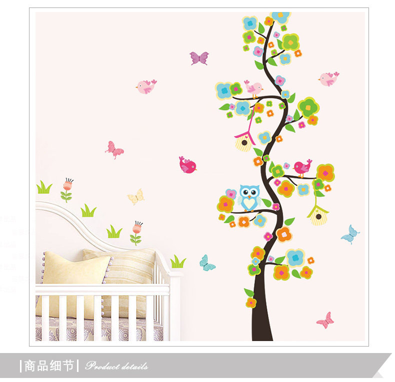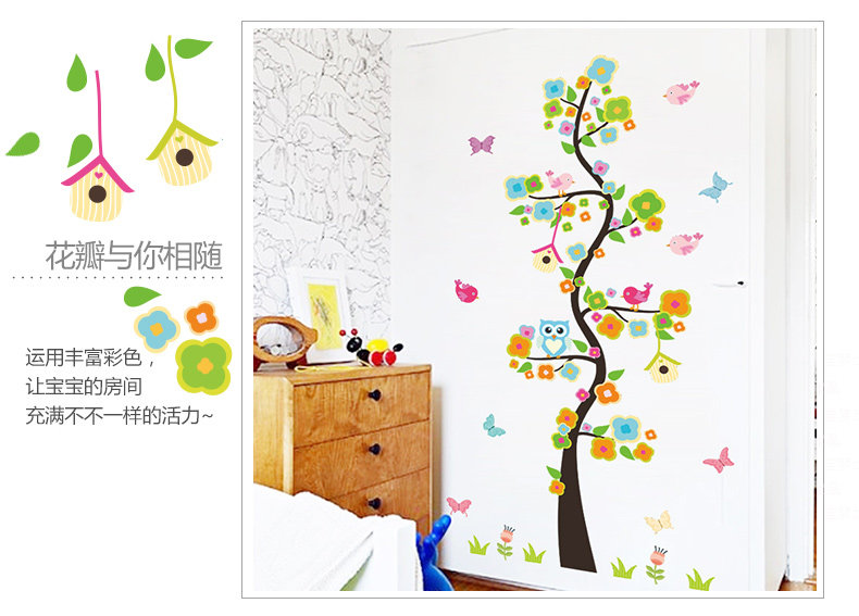 花瓣树沙发客厅背景墙贴纸可爱壁贴猫头鹰墙贴过道走廊装饰树墙贴