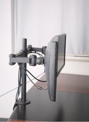 - Feature : Holds up to 27 inch lcd wide screen monitors / The space between the monitors is fully adjustable / LCD monitor arms help utilize work space, improve ergonomics and share views / Easy to install. Sets up in minutes. Clamps directly to desk