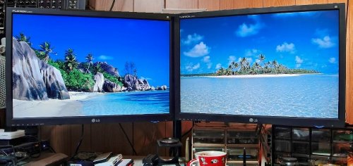 - Title : Dual Monitor Stand holds monitors up to 27" widescreen. Uses standard Vesa mount. Clamps to Desk.