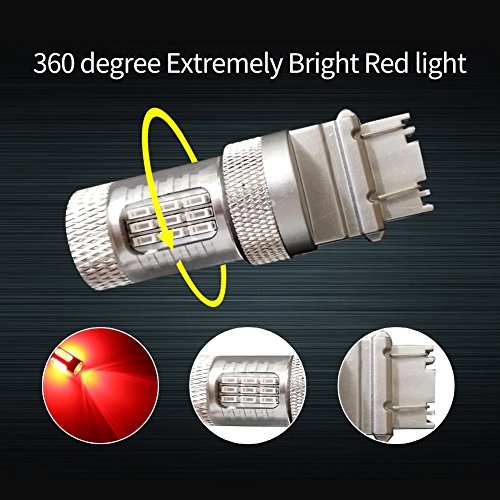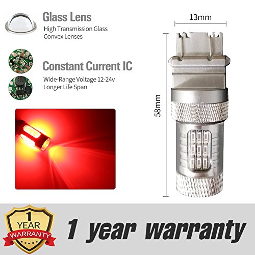 DunGu 3157 3057 4157 LED Bulb Red Super Bright 600 lumen for Brake Stop Tail Lights wide voltage 12 - 24V (Pack of 2) …