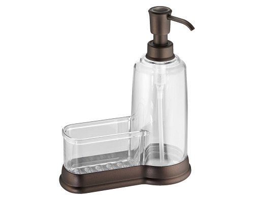 [Product Information]- The Threshold Bronze Soap Pump w/Sponge Caddy is a great solution for storing your kitchen sponge and dish soap into one compact unit. Made of clear plastic with bronze accents, this caddy holds liquid soap and a sponge.