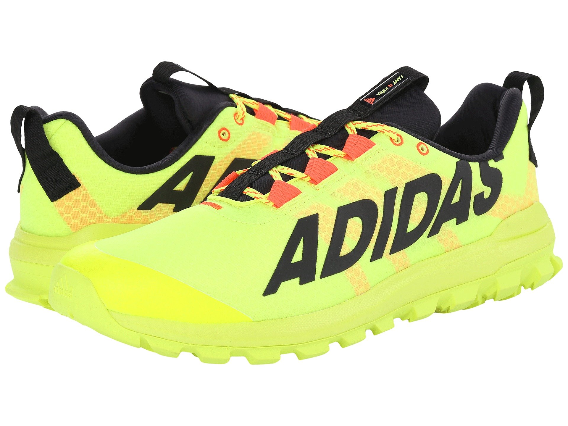 | Product Information SKU: #8555486Take a trek off the beaten path in the adventure-ready adidas? Vigor 6 TR trail-running shoe!Successor to the Vigor 5.Breathable mesh and synthetic upper materials. Lace-up closure.Heel pull tab.Lightly padded tongue and collar.Smooth fabric lining offers a great next-to-foot feel.Removable foam insole. Full-length EVA midsole.High-performance rubber delivers reliable traction.Imported. Product measurements were taken using size 11, width D - Medium. Please note that measurements may vary by size.Weight of footwear is based on a single item, not a pair.Measurements: Weight: 13 oz |