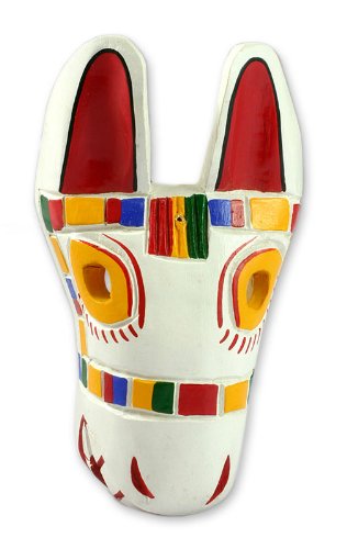 NOVICA Decorative Animal Themed Pine Wood Mask, White 'Dancing Horse'