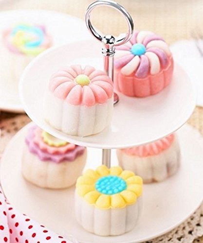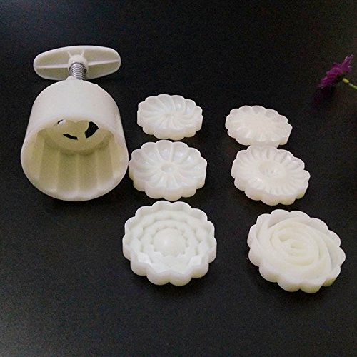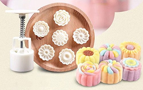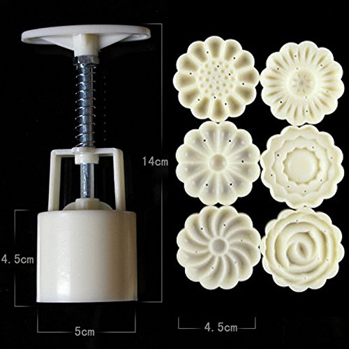 Rosiness Hand Pressure Moon Cake Mold with 6 Flower Shape Stamps Mid Autumn Festival DIY Decoration Round