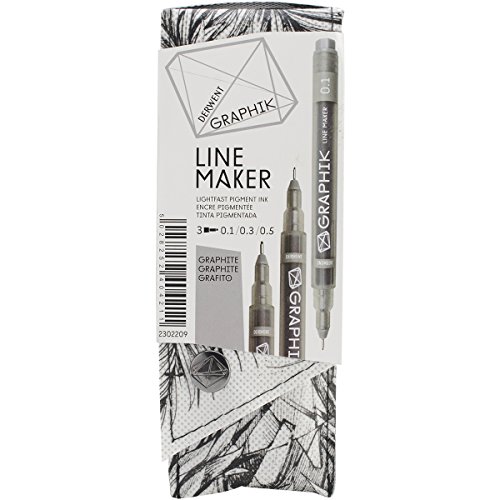 Derwent Graphik Line Maker Drawing Pens, Graphite, 3-PACK (2302209)
