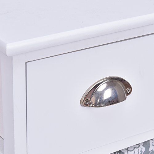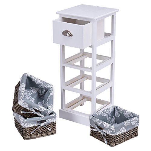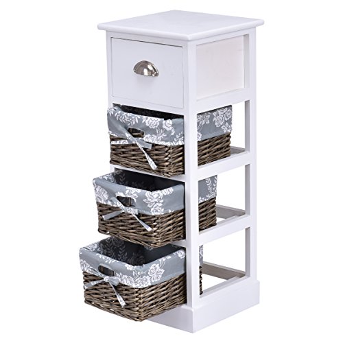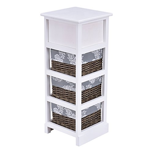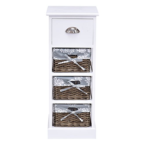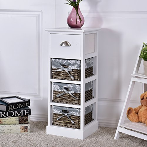 Feature: White Color And Compact Modern Style Elegant White Lacquered Appearance A Perfect Decoration Of Your Room Three Wicker Rattan Drawers And A Storage Drawer With Knob To Store Things Useful Table Top To Put Things Large Storage Space Convenient For You To Use Sturdy Wooden Frame Can Serve You For A Long Time Helpful Placing Rack And Accent Piece