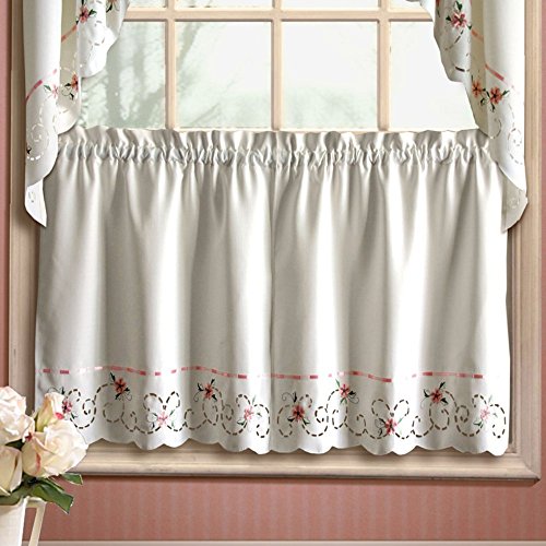 Lovely "Rachael" Kitchen Tiers Feature Beautiful Colored Embroidery Florals And Ribbon On Elegant Designed Tiers. Four Colors To Choose From! Coordinating Tiers And Toppers.