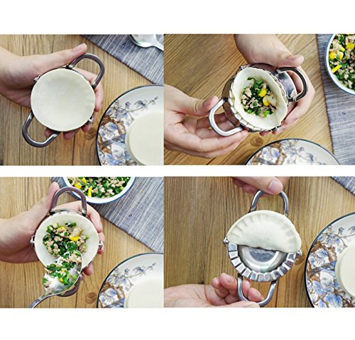 - Made of stainless steel, durable and solid enough.Easy clean and dishwasher safe. Easy to use:Lay a sheet of dough or pasta over, add filling then press. Fill, fold and press to seal a perfect packet. Make dumplings quickly and effortlessly. Ideal DIY tool for making calzone, dumpling, empanada, pie, ravioli, pierogi, pot sticker,ect.