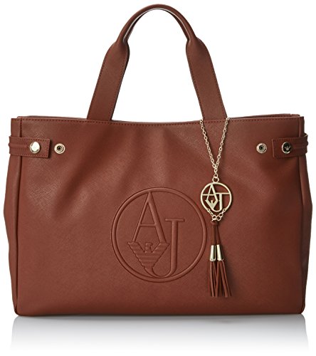 - Title : Armani Jeans Faux Saffiano Leather East West Tote Shoulder Bag, Brown, One Size