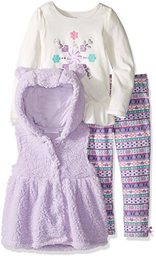 Kids Headquarters Little Girls' Toddler 3 Piece Sherpa Hooded with Ears Vest Pants Set, Lilac, 4T