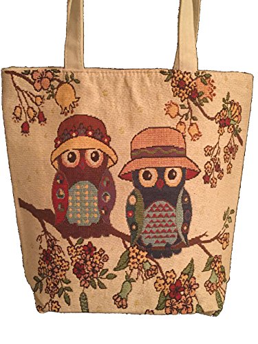 Animal Canvas Tote Reusable Bags with Protective Liner (2 Owls with Sun Hats)