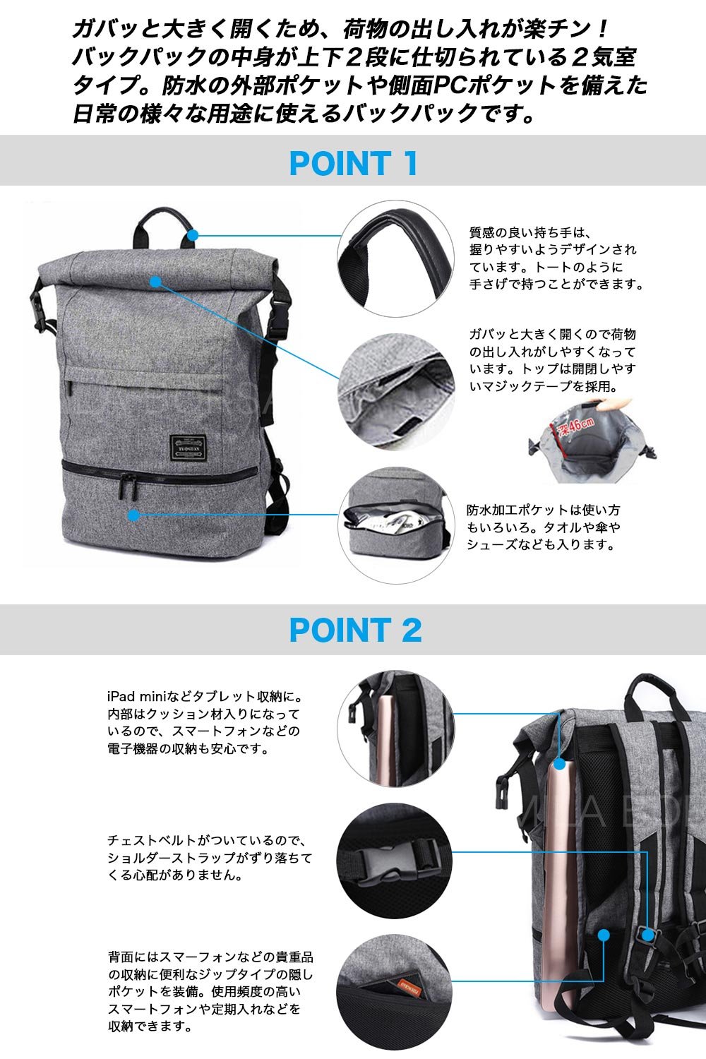 Because the main pocket entrance has become a roll top type, guard firmly the invasion of rain water etc.!