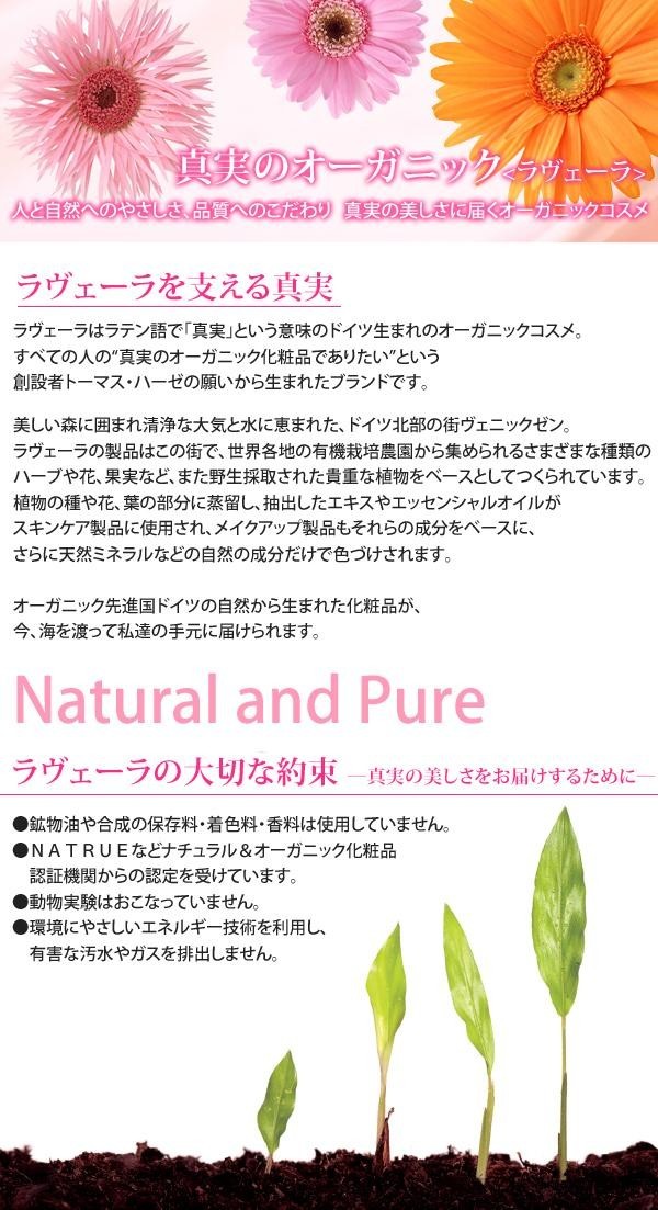 | 仕様 | クリーム状 鉱物油不使用 合成保存料・着色料・香料不使用 商品区分:化粧品 メーカー:ラヴェーラ 輸入者:株式会社アレスビューティー |