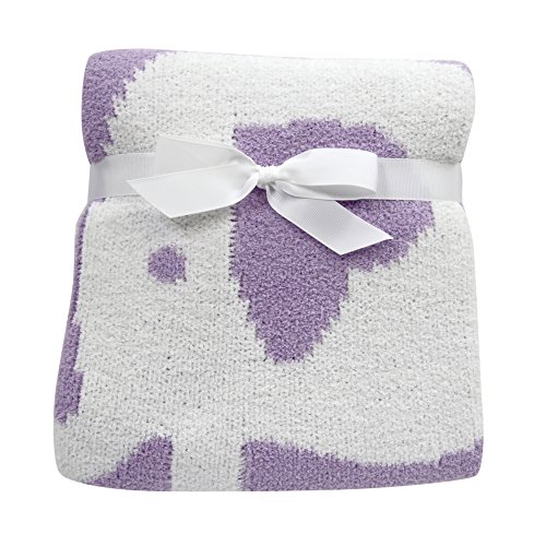 Lambs & Ivy Elephant Chenille Blanket, Lavender/White