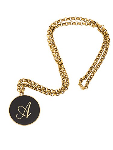 -. Feature : Vergoldete Halskette und Medaillon mit Initiale, Emaille, Schwarz / Handgemacht in Florenz, Cecchi-original, Umfang 5 cm / Vergoldet